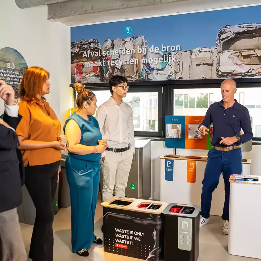 De Afval Experience is een unieke, interactieve beleving voor organisaties die willen starten of al bezig zijn met circulair ondernemen. Het is dé manier om medewerkers bewust te maken van het belang van afvalscheiding en circulariteit, op een manier die blijft hangen. Tijdens deze ervaring verbinden we beleid, operatie en facilitair, vergroten we het draagvlak en geven we energie, richting en concrete vervolgstappen richting een afvalvrij en CO₂-neutraal beleid. Ideaal als kickstart voor organisaties die weten dat ze met duurzaamheid aan de slag willen, maar nog zoekende zijn naar hoe ze dat het beste kunnen aanpakken.