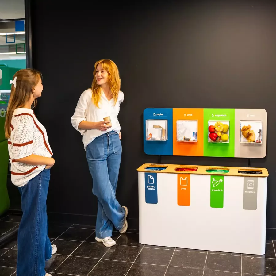 - Kleurgecodeerde instructies zorgen voor directe herkenning van de juiste afvalstromen