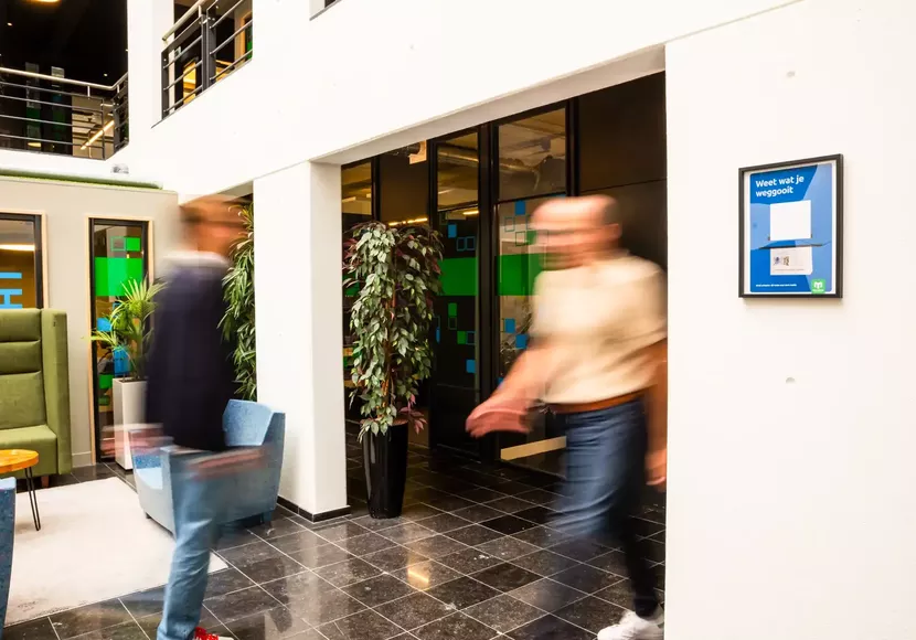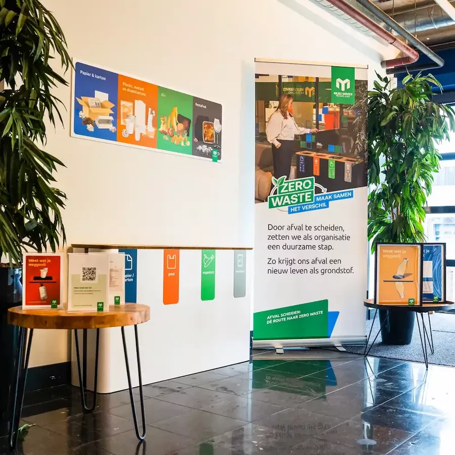 Effectieve communicatie is essentieel om bewustzijn om te zetten in daadwerkelijk ander gedrag. Door visuele en herkenbare middelen op strategische plekken te gebruiken, zoals posters, banners, tafelkaarten, afvalwijzers en intranetberichten , sluit de boodschap naadloos aan op de dagelijkse praktijk van medewerkers. Deze mix van kanalen vergroot het bereik, houdt afvalscheiding top of mind en maakt het onderdeel van de routine.